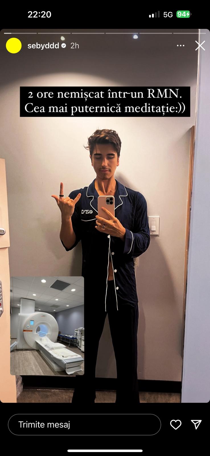 Așa se face că, în urmă cu puțin timp, Sebastian a făcut o postare care în primă fază i-a îngrijorat pe urmăritori. Mai precis, acesta s-a postat pe Instagram imediat ce terminase o investigație de tip RMN care a durat 2 ore.