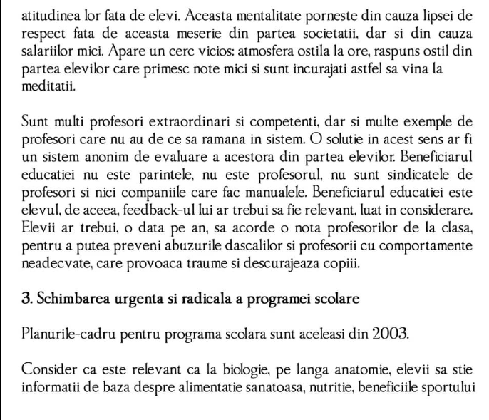 „Cine vrea să schimbăm școala? Vă rog să citiți această scrisoare și, dacă sunteți de acord cu mesajul meu, să o postați și voi pe wall, story, FB, oriunde, cu #VremOScoalaCaAfara #EducatiaSchimbaTot, să o trimiteți la Guvern, să o trimiteți prietenilor. Dacă această scrisoare are o imensă susținere le va fi imposibil să ne ignore. Școala din România scoate, în prezent, analfabeți funcționali pe bandă rulantă.