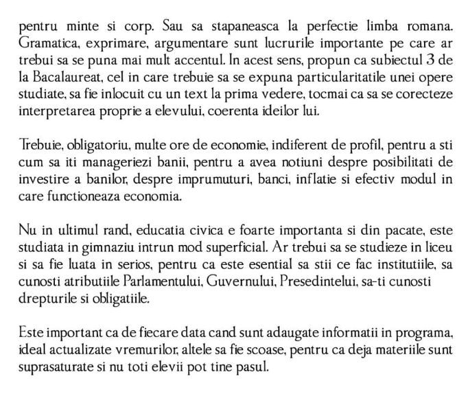 De ce e mai important să memorezi pagini întregi de comentarii decât să înveți despre bani, economie, instituțiile statului, sănătate, drepturile și obligațiile tale? Am intrat în sistemul de învățământ în 2008, am terminat liceul în 2020.