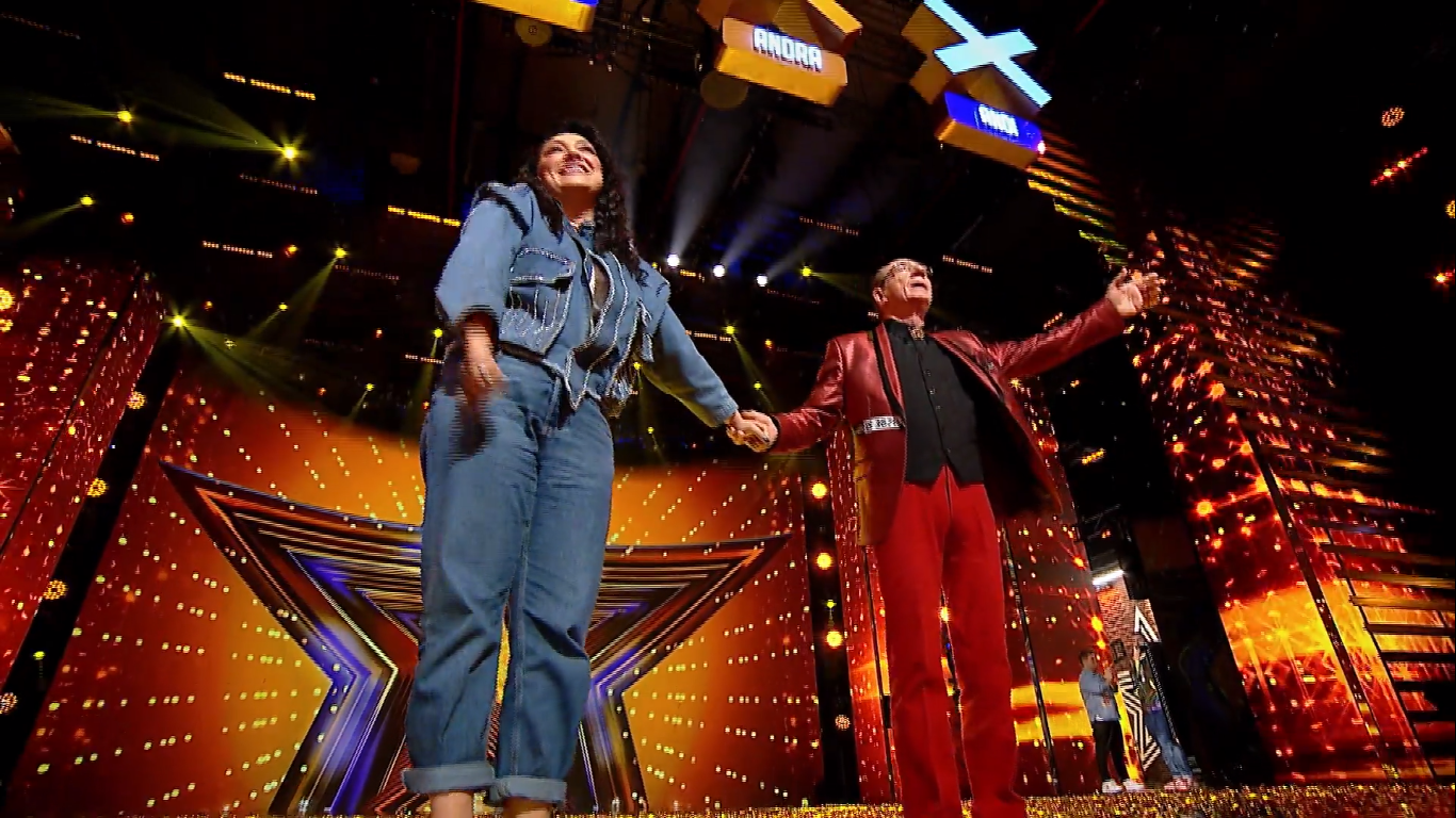 ”A fost așa de frumos și în momentul ăsta nu mai e nevoie de alte cuvine decât din toată inima apăsăm împreună…Felicitări, ne vedem direct în semifinală”, a spus Andra, după care a apăsat pe butonul auriu alături de Mihai Bobonete.