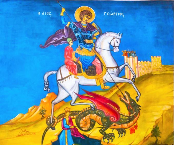 Sfantul Gheorghe apare cel mai des in icoane omorand un balaur sinistru.