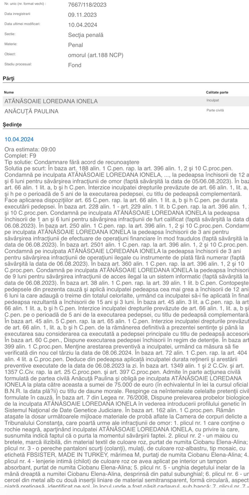 Așadar, avocatul Adrian Cuculis a venit cu noi detalii despre anchetă și a oferit informații despre pedeapsa pe care a primit-o Loredana Atănăsoaie.