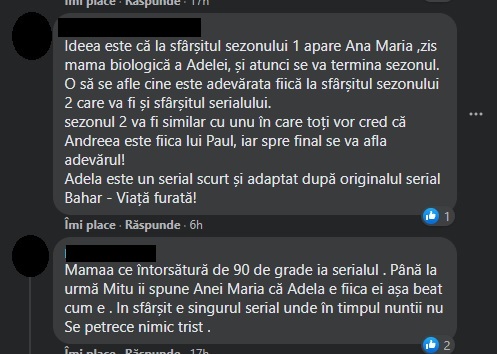 Primul sezon se va încheia cu nunta dintre Adela și Mihai, unde vor exista niște întorsături de situații, căci Andreea nu are de gând să renunțe.