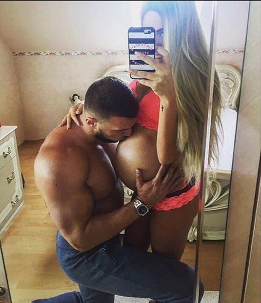 Sexy Braileanca, in chiloti si sutien cu cateva zile inainte sa nasca! Iubitul o pupa pe burtica, ea face poza in oglinda!