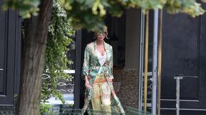 Bianca purta o pereche de pantaloni pana, cu vedere la glezna, de culoare galben pai, o bluza de matase alba, decoltata generos, astfel ca sanii mari si plini i se vedeau de la intrarea in local, si un trench de matase, foarte subtire, inflorat, in tendintele actuale ale modei! La tinuta, vedeta a ales sa isi asorteze o pereche de ochelari de soare mari si scumpi, care ii veneau, pur si simplu, perfect!