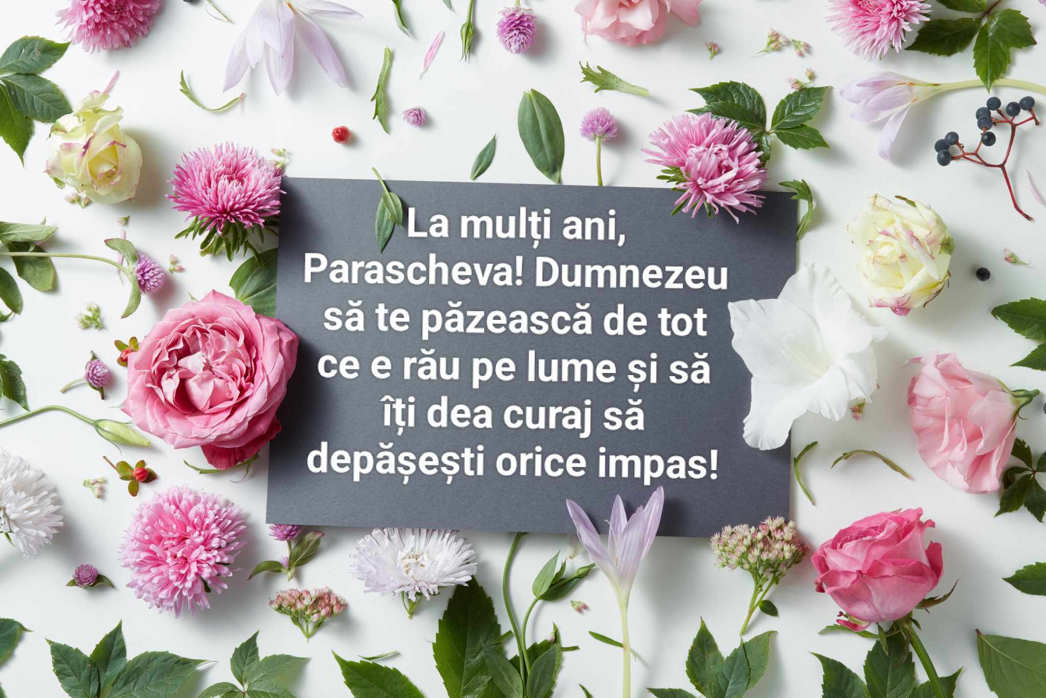 - La mulți ani, cu ocazia zilei tale de nume! Fie ca Sfânta Parascheva să te apere de rele și de necazuri!