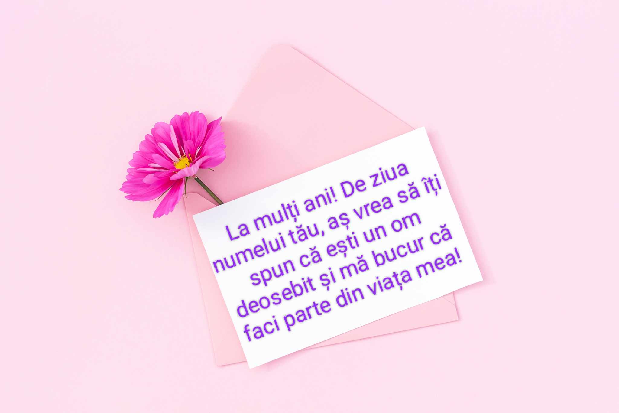 - La mulți ani! De ziua numelui tău, aș vrea să îți spun că ești un om deosebit și mă bucur că ai un suflet bun!