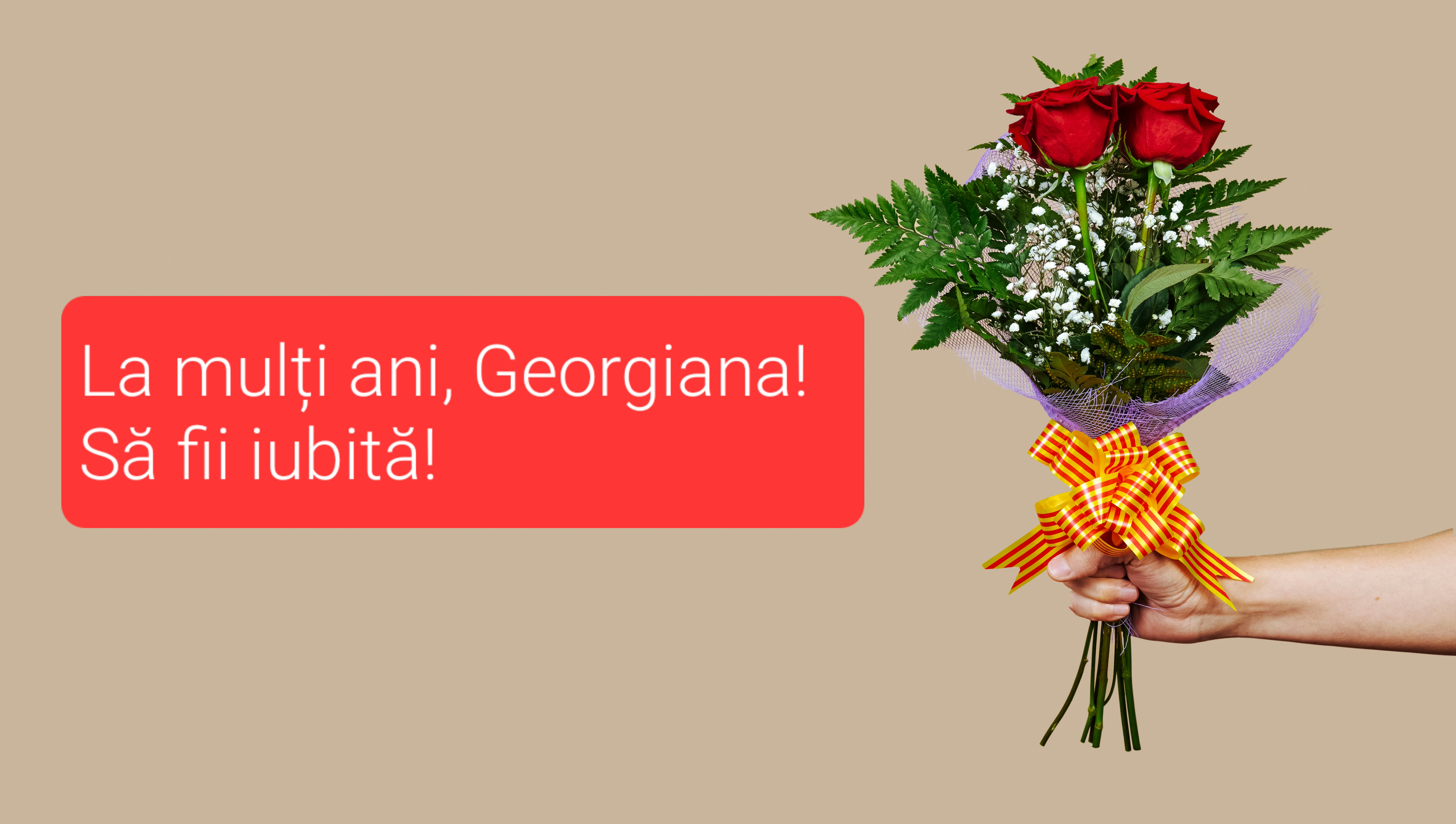 - La mulţi ani, Georgiana! Fie ca începând cu această zi toate necazurile să te ocolească, dragostea la tine în suflet să poposească fără să mai plece, să ai doar zile însorite şi pline de bucurie. La muţi ani!