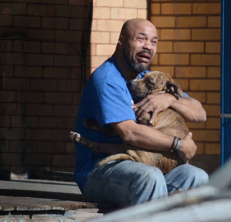 Un incendiu a izbucnit in locuinta lui. Fotografia emotionanta a fost facuta la scurt timp dupa ce pompierii au reusit sa scoata cainele din casa. Din pacate, femela a inhalat prea mult fum si a murit. Cu ochii in lacrimi si privirea disperata, proprietarul isi strange la piept un prieten drag. Animalele de companie fac parte din familie, iar pierderea lor provoaca o suferinta ce nu poate fi descrisa in cuvinte.