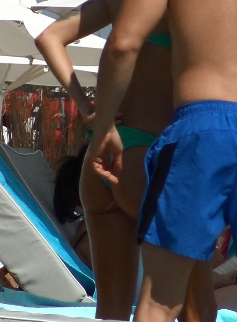 Din nefericire, tanara se afla in acea perioada a lunii, iar chilotul de baie, destul de larg, i-a provocat oarecare neplaceri, lasand sa se vada prin el… o parte dintr-un accesoriu intim.