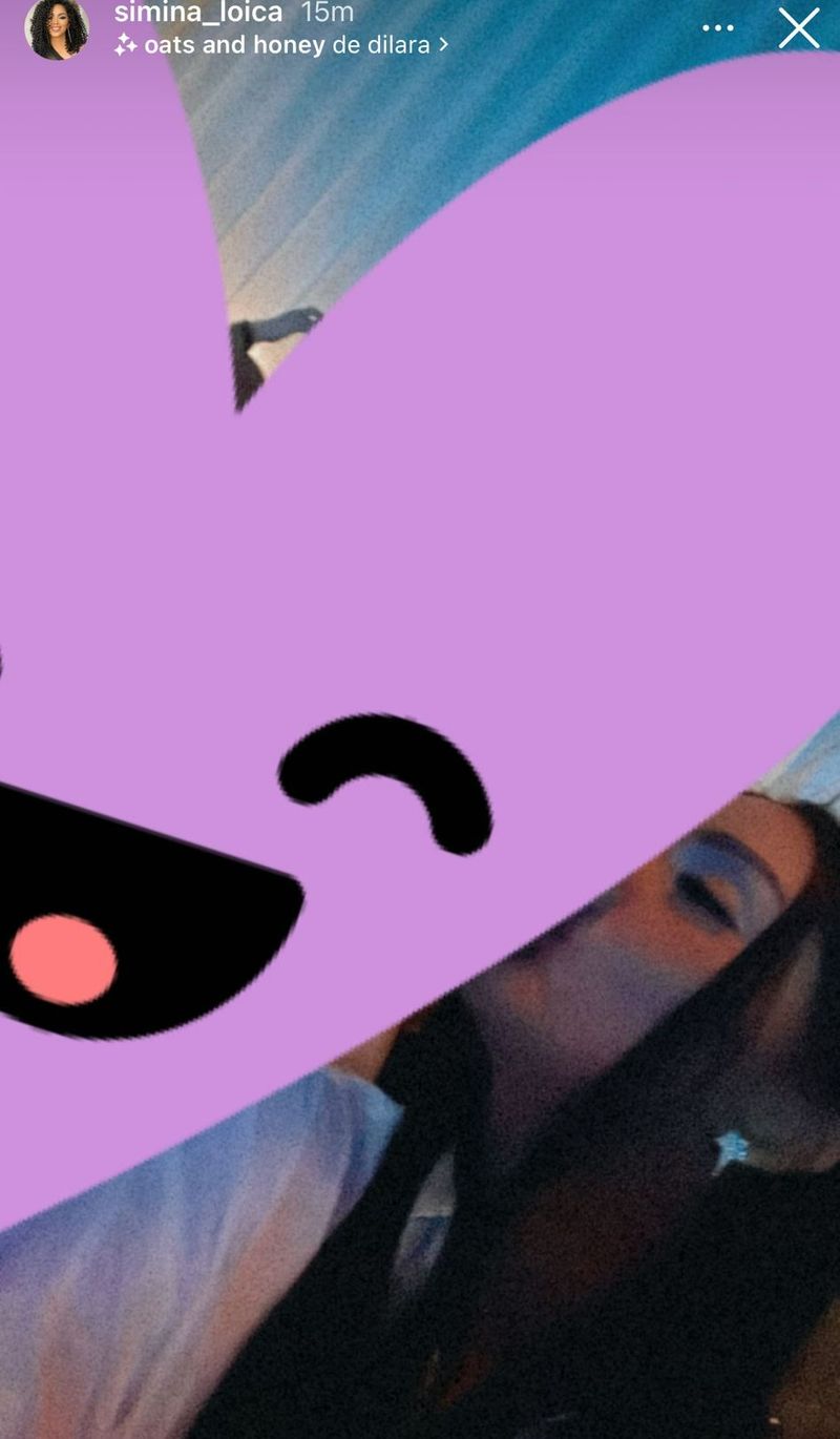 Simina Loica s-a pozat în timp ce se sărută cu o persoană misterioasă, iar judecând după faptul că a pus o inimă mare în încercarea de a-i ține secretă identitatea, putem să de gândim că este vorba despre un bărbat pe care aceasta vrea să-l țină departe de ochii curioșilor.