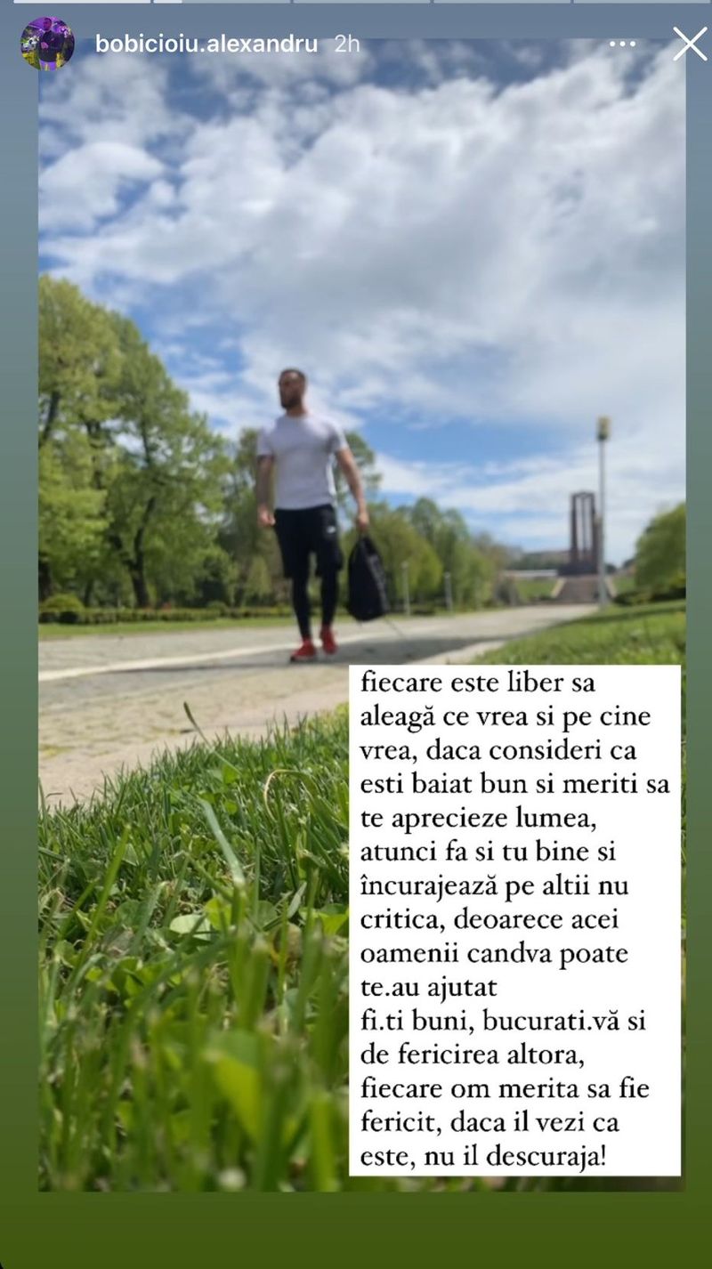 Un alt lucru care întărește ipoteza noastră este faptul că astăzi, Alexandru Bobicioiu a postat un mesaj pe Instagram, care pare că le cere subtil oamenilor să nu îl critice, nici pe el și nici pe ea, pentru alegerea pe care au făcut-o, de începe ceva împreună. În mesaj este vorba despre fericirea unui cuplu, care este judecată de cei din jur. Ba mai mult, pare că se adresează direct cuiva, care nu îi susține alegerea, fiind foarte revoltat de acest lucru.