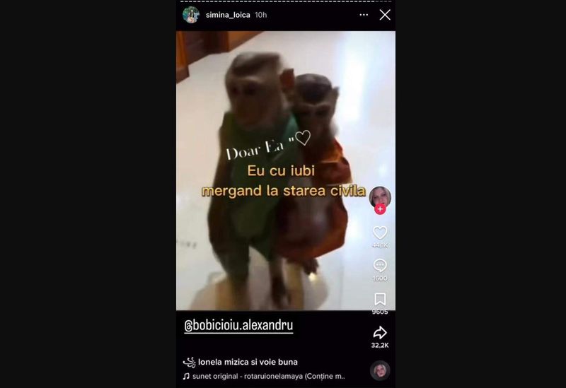 Ei bine, este vorba doar despre un videoclip amuzant pe care Simina Loica l-a distribuit pe rețelele de socializare, acolo unde apar două animăluțe caraghioase, iar în descrierea filmulețului se vorbește despre căsătorie.