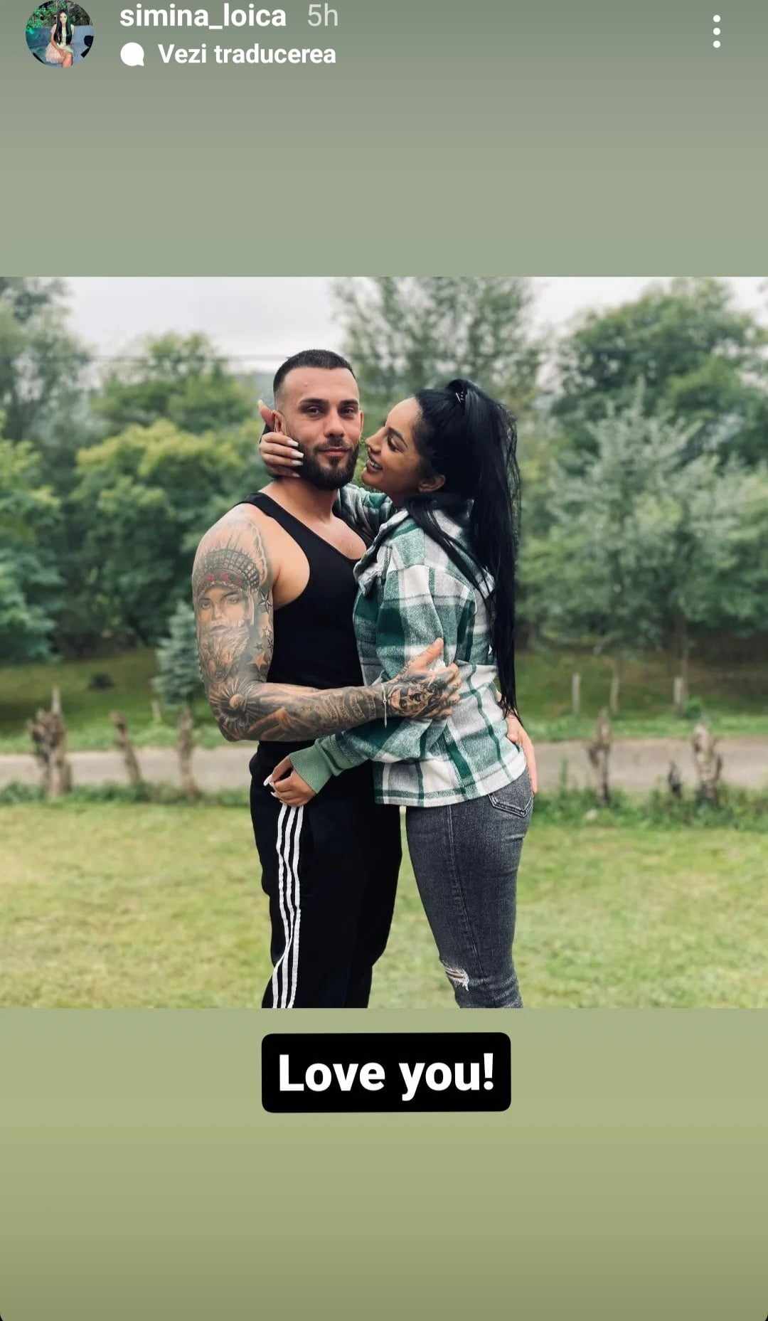 „Te iubesc”, este mesajul pe care Simina Loica l-a scris, în dreptul imaginii cu Alex Bobicioiu.