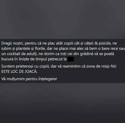 Mesajul restaurantului din Capitală, cu privire la părinții însoțiți de copii