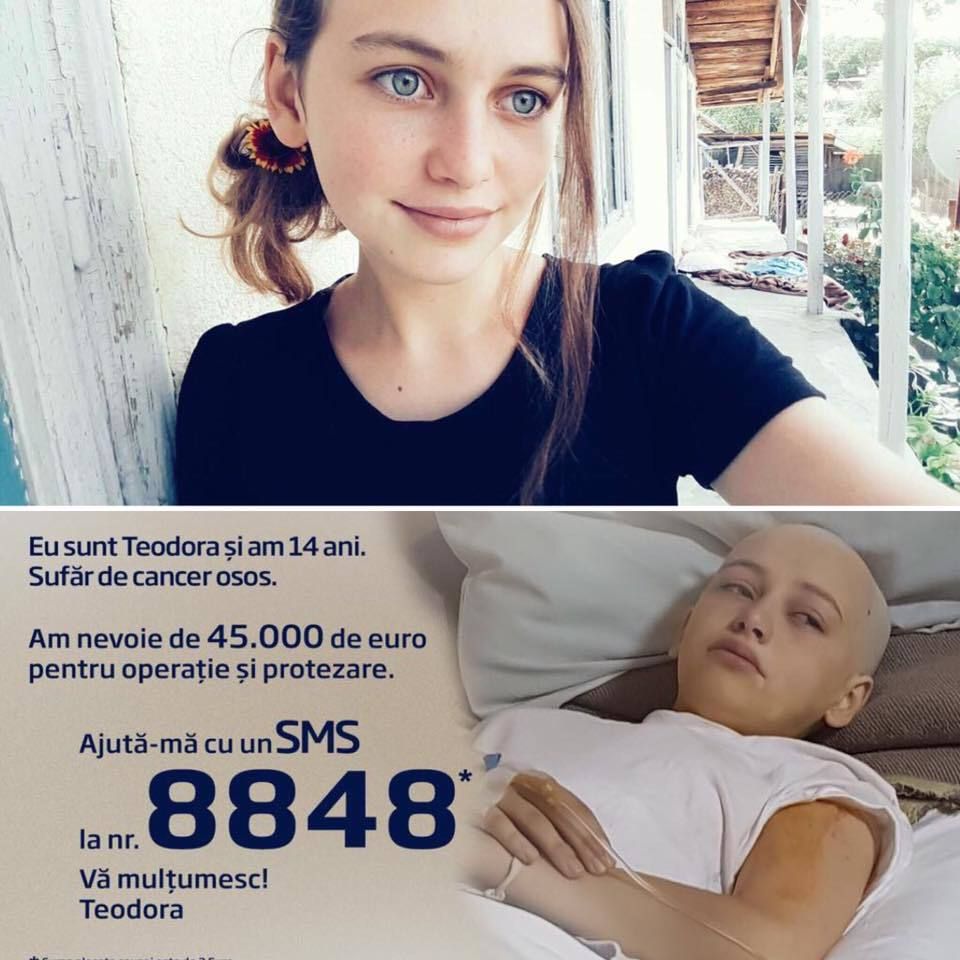 „Teodora. 14 ani. Cancer osos. Un sms la 8848 îi poate salva viaţa. De la mine, de la tine, cel care citeşti postarea asta. Părinţii (mama profesoară, tatăl preot) nu au 45 de mii de euro, bani care i-ar salva viaţa. Dar uite că suntem noi, aici, pentru Teodora. Ai dat sms, da? 8848, pentru Teodora. Mulţumesc pentru viaţa Teodorei…”, a transmis Simona Gherghe.