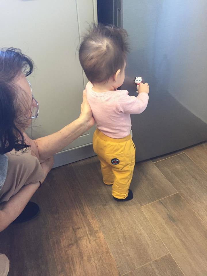Simona Gherghe si-a fotografiat fetita in timp ce facea primii pasi si a postat imaginea pe o retea de socializare.