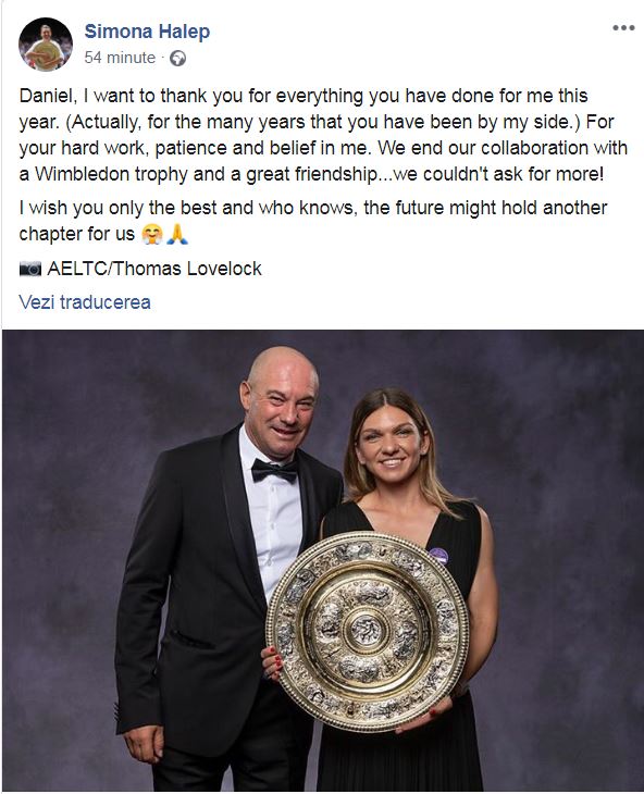 Simona Halep este campioana noastră și a demonstrat de nenumărate ori că este cea mai bună tenismenă! În cursul zilei de azi, joi, celebra tenismenă a postat pe rețelele de socializare un mesaj în care anunță că a încheiat colaborarea cu antrenorul Daniel Dobre, cel care i-a fost alături, cât timp Darren Cahill a fost plecat. Simona Halep își va relua antrenamentele cu Darren Cahill. Antrenorul a dorit să petreacă mai mult timp cu familia sa.