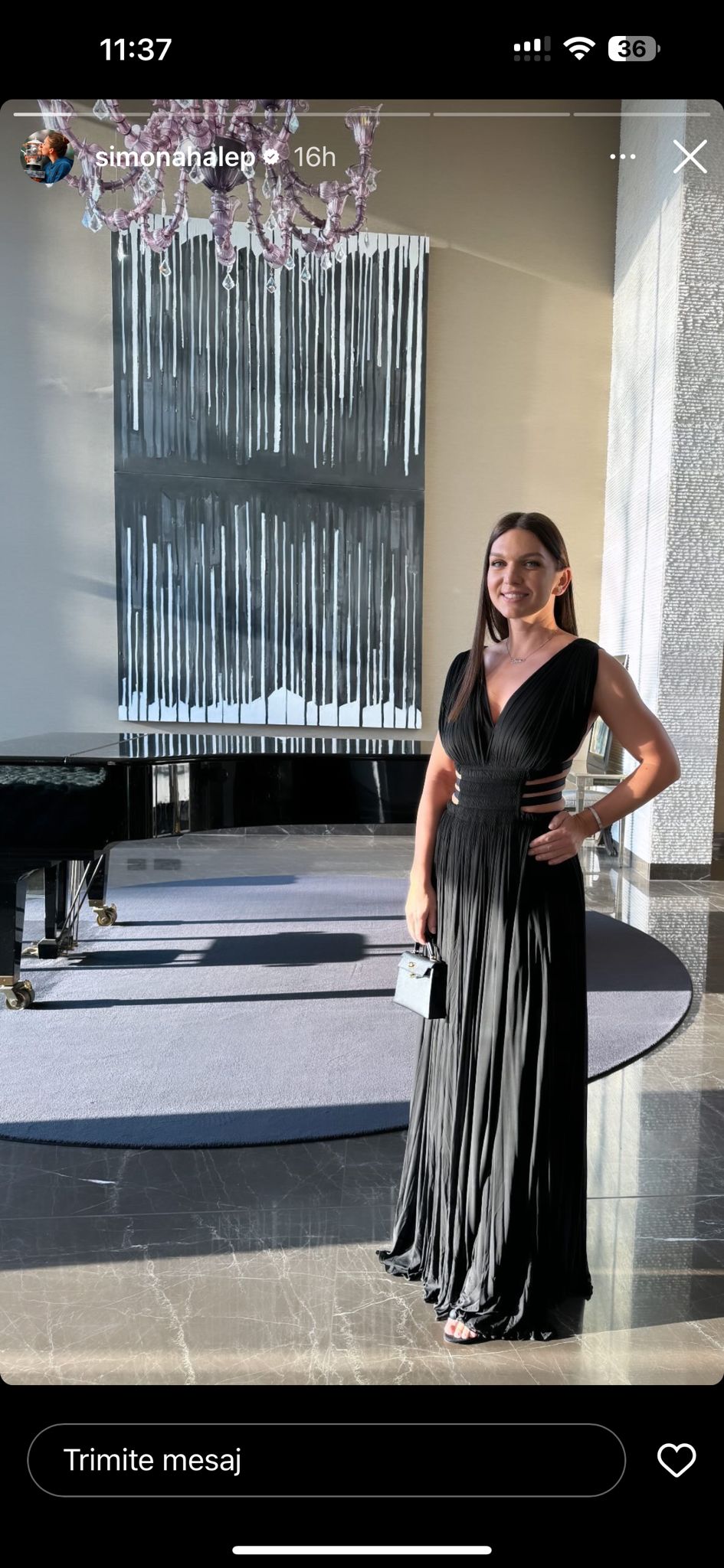 Se pare că ținuta aleasă de sportivă, respectiv o rochie lungă, neagră, creație a designerului tunisian Azzedine Alaïa, cu decupaj în zona abdomenului, ar depăși suma de 4.000 de euro.