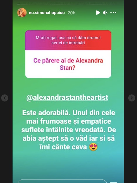 Despre Alexandra Stan: „Este adorabilă. Unul dintre cele mai frumoase și empatice suflete întâlnite vreodată. D-abia aștept să o văd iar și să îmi cânte ceva”.