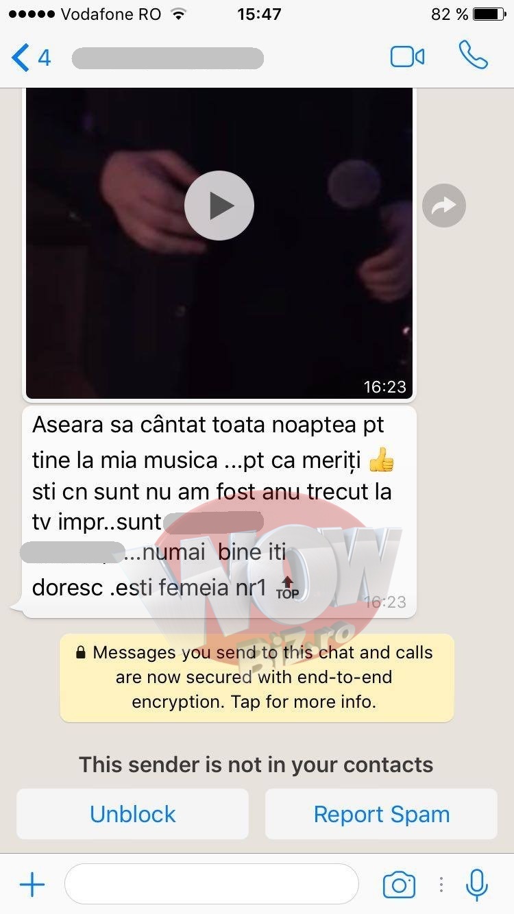 “Acest baiat, care are vreo 20 si ceva de ani cred ca ma tot cauta de vreun an. Am zis ca se potoleste, dar situatia vad ca e din ce in ce mai rau. Ma sperie. M-a urmarit si intr-un club, zilele trecute, unde fusesem la ziua unei prietene. S-a filmat in club, sa-mi arate ca e acolo unde eram si eu. Nu se potoleste. E obsedat de mine. Are o problema.