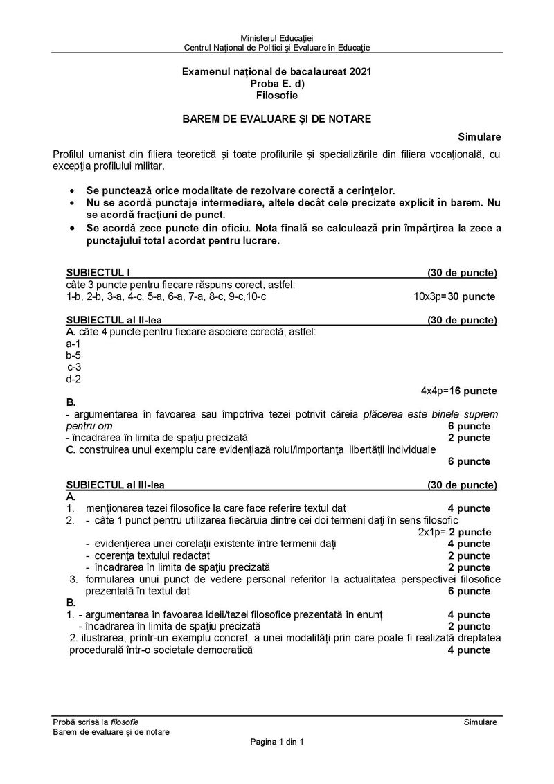 Simulare BAC 2021. Barem de corectare la Filosofie