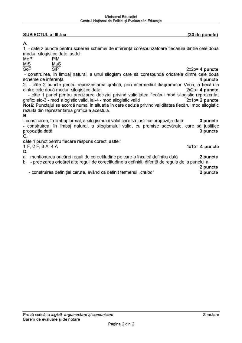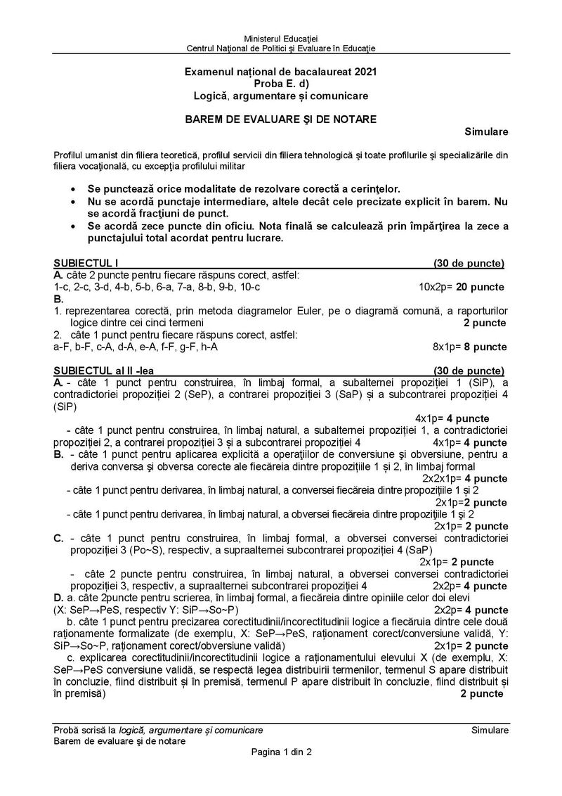 Simulare BAC 2021. Barem de corectare la Logică şi argumentare