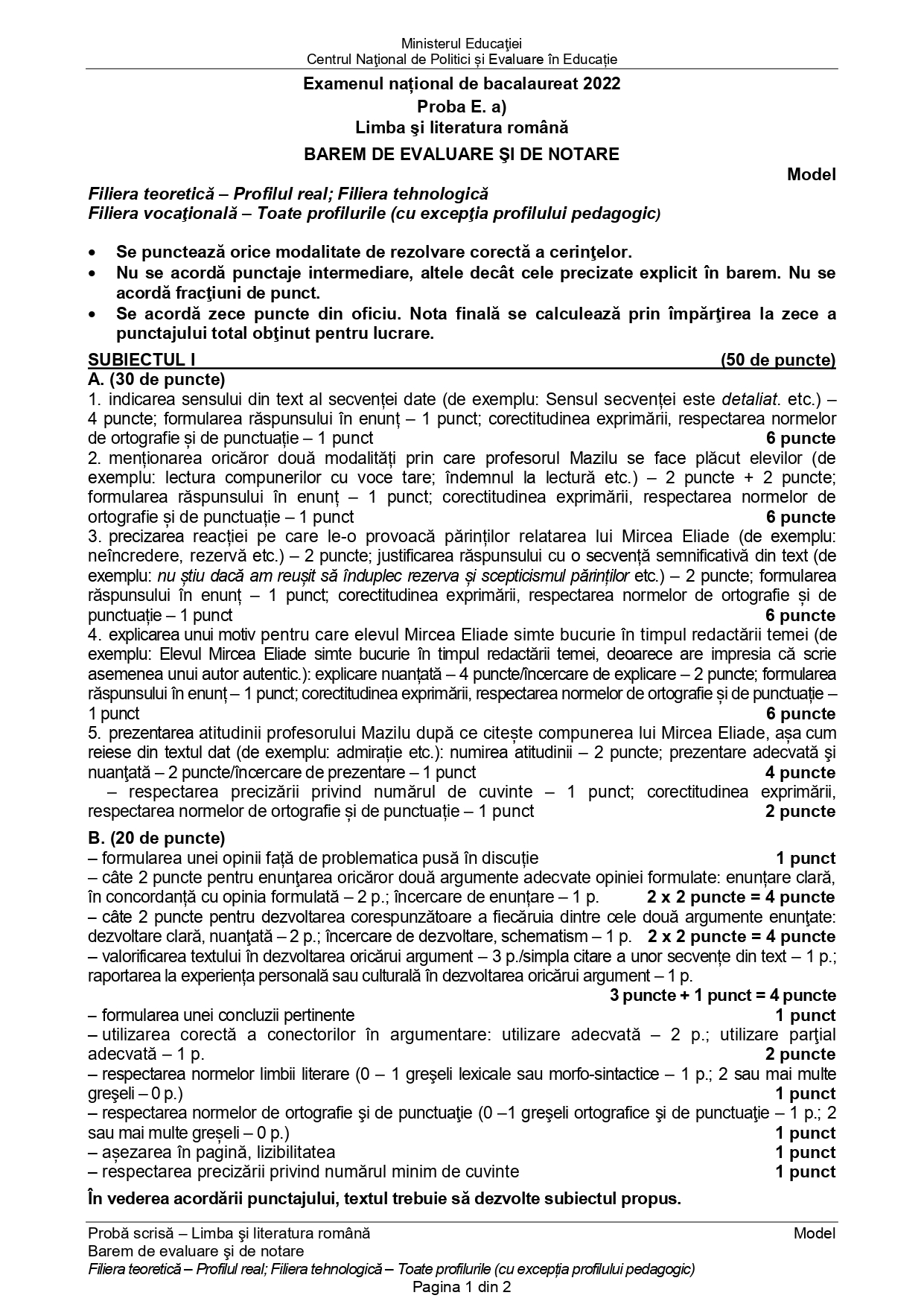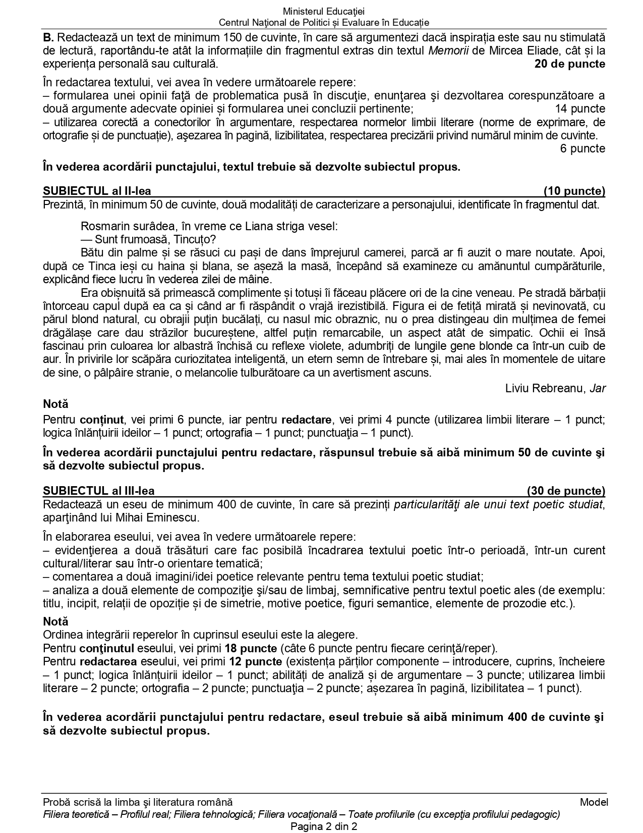 - 16 august 2022 Limba și literatura română — proba E.a) — proba scrisă