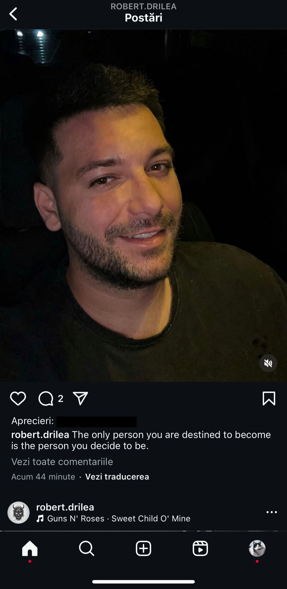 „Singura persoană care ești destinat să devii este persoana care ai decis să fii”, este descriere unei fotografii publicată de Robert Drilea în mediul online.