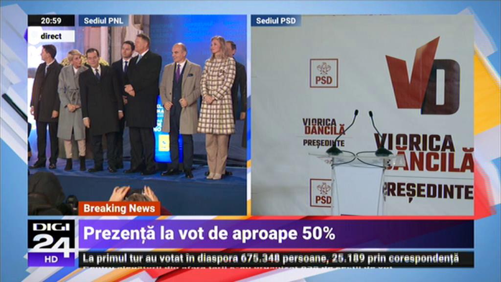 Potrivit rezultatelor parțiale făcute publice după ora 21, Klaus Iohannis a câștigat alegerile cu 60,02 la sută, în vreme ce contracandidata sa, Viorica Dăncilă, reprezentanta PSD, a reușit să obțină 39,98% din voturile exprimate de românii din țară și străinătate.