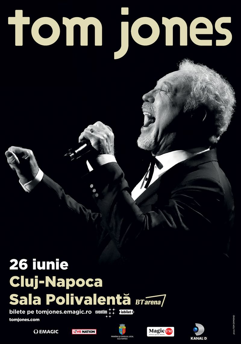 Miercuri, 26 iunie, Sir Tom Jones va canta pentru prima data in Cluj-Napoca. Artistul britanic revine in Romania pentru a incanta publicul roman cu cele mai cunoscute hit-uri, precum It`s Not Unusual, Kiss, Delilah, I`ll never fall In Love Again si If I Only Knew. Pe langa cele mai cunoscute cantece din discografia artistului, Tom Jones va interpreta compozitii de pe cele mai recente albume: Long Lost Suitcase, Spirit In The Room si Praise & Blame.