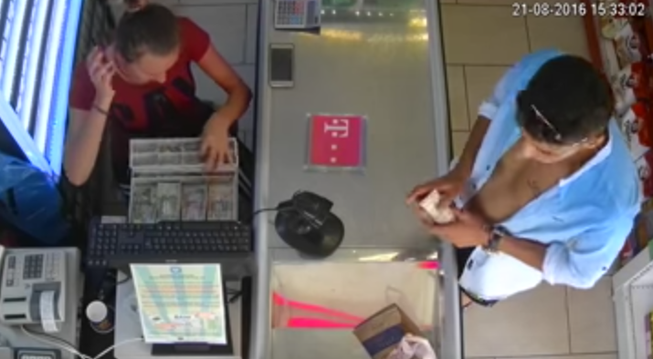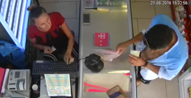 Smecherasul asta a pacalit o casiera cu metoda "Maradona"! Uite ce teapa de milioane i-a dat! Trebuie sa te uiti la filmulet de doua ori ca sa te prinzi cum a sucit banii in mana! VIDEO