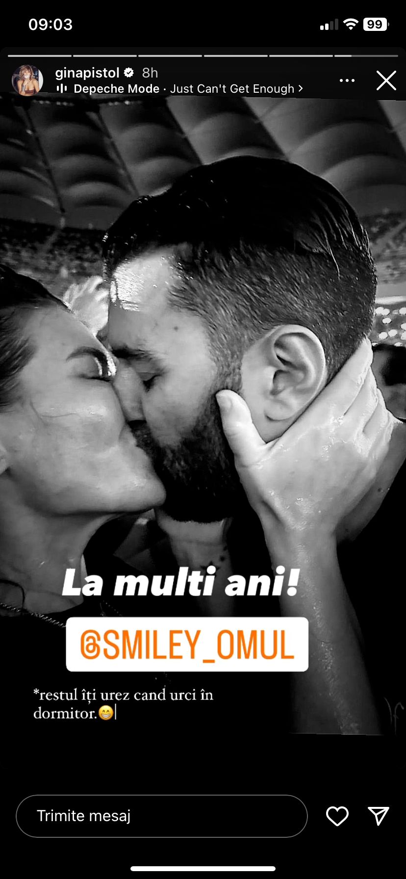 Ziua de naștere a lui Smiley nu putea să înceapă mai frumos, decât cu un mesaj de la soția lui Gina Pistol, chiar la scurt timp după miezul nopții.