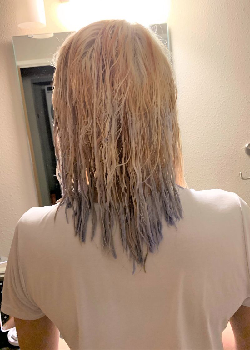 „Am folosit același decolorant și instrucțiunile pe care le-am încercat și înainte. Nu m-aș fi așteptat ca ceva să meargă prost. Am părul extrem de lung, așa că odată ce am pus decolorantul, am pus o cască pentru duș peste, deoarece nu voiam să fac mizerie.