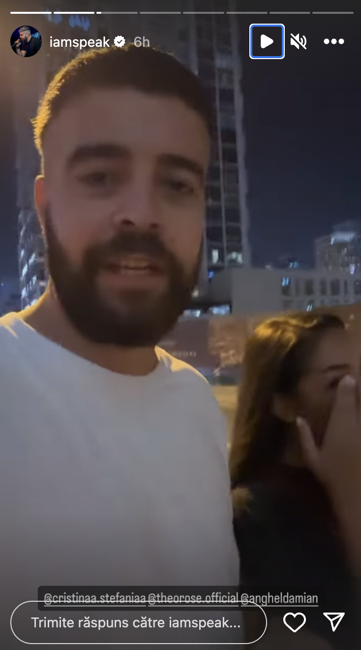 Speak a rămas blocat când iubita lui a confundat un bărbat cu Anghel Damian, în timp ce se aflau în Dubai. Primul gând care i-a trecut prin minte, când Ștefania a adus vorba despre partenerul lui Theo Rose: "Ce o căuta pe un motor?"