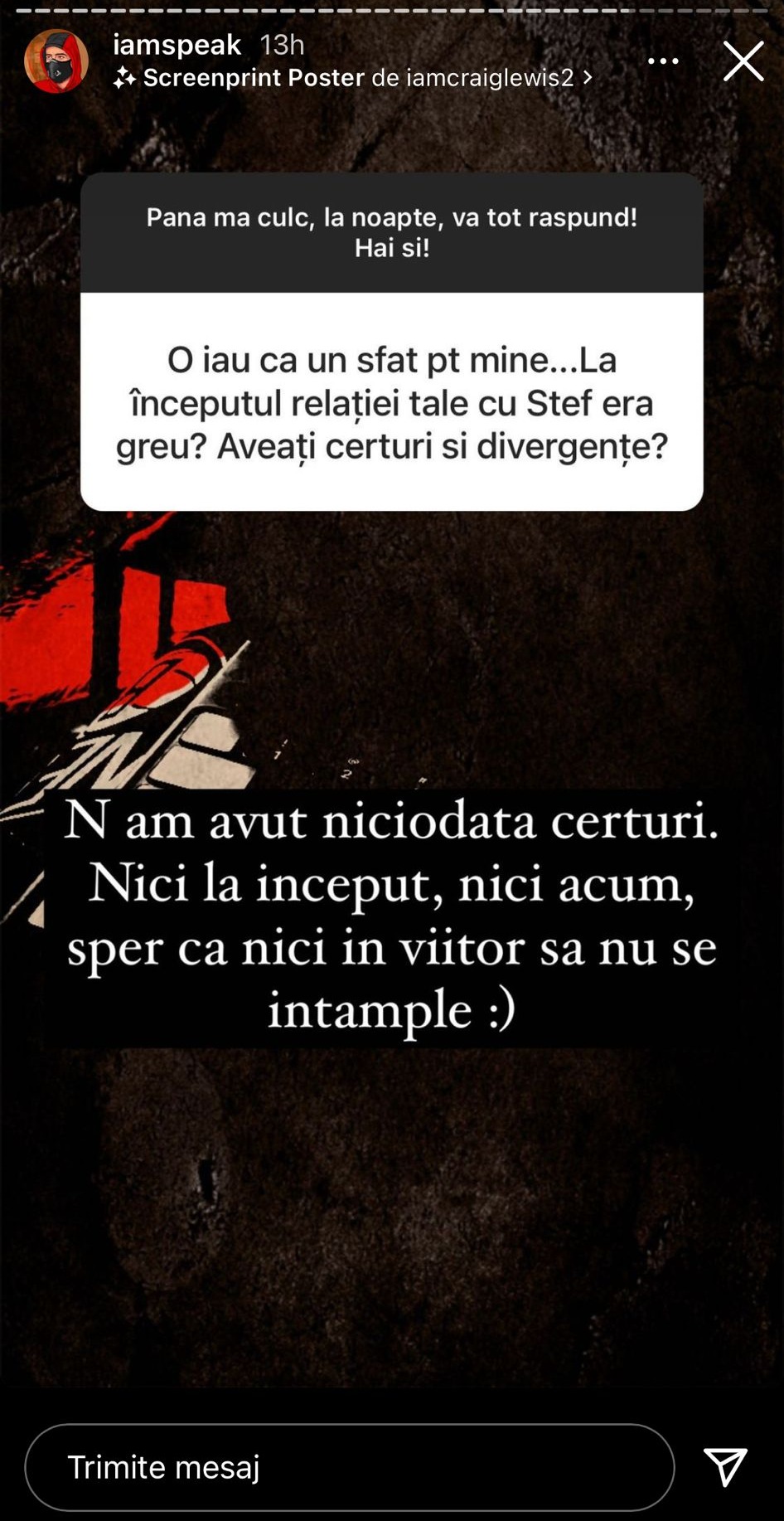 Pe pagina lui de Instagram, Speak a susținut o sesiune de întrebări.