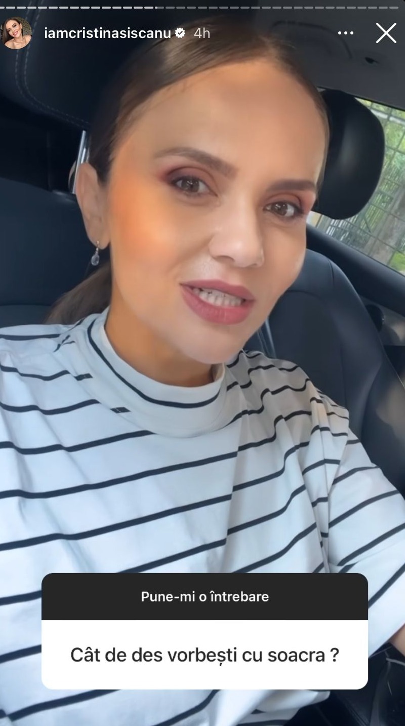 „Cât de des vorbești cu soacra?”, a fost întrebarea pe care Cristina Șișcanu a primit-o din partea unei admiratoare.