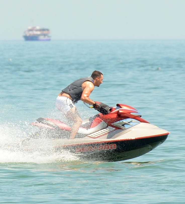 Stefan Stan, in rolul "lupului singuratic" la mare! Nu-l insoteste nicio domnisoara in plimbarile lui cu ski-jet-ul VIDEO EXCLUSIV