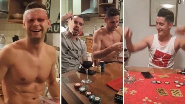 La un moment dat, unul dintre ei şi-a pus pe frunte o felie de prosciutto. Jucătorii lui Hajduk din imagini, Stipe Vucur, Andre Fomitschow şi Steliano Filip au avut evoluţii foarte modeste în acest an, ele fiind acum puse pe seama activităţilor pe care le au în afara terenului, relatează telekomsport.ro.