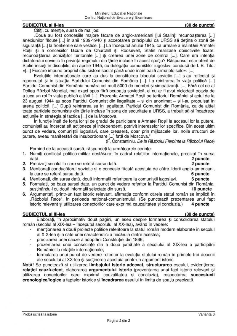 Subiecte Istorie Bac 2018. Sesiunea de toamnă