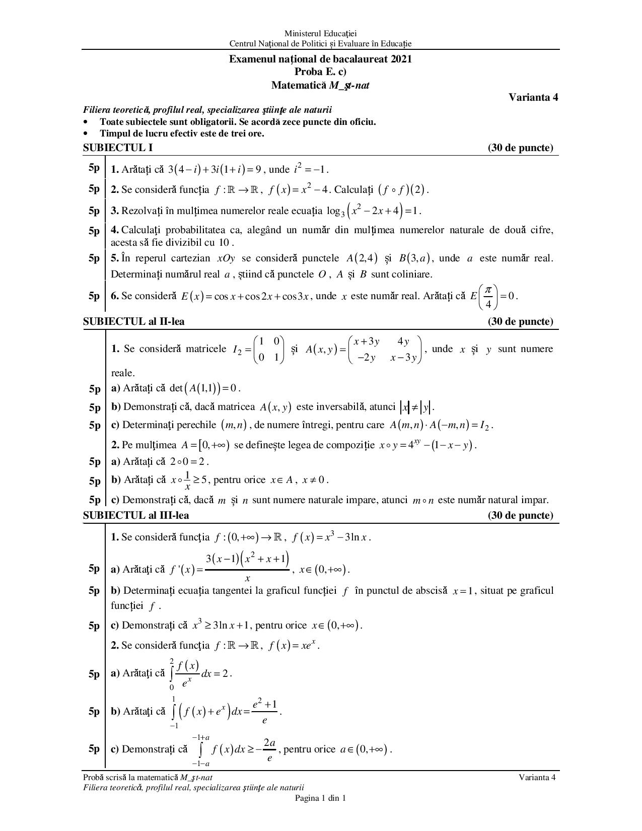 17 august 2021- Proba obligatorie a profilului- proba E.c)- proba scrisă
