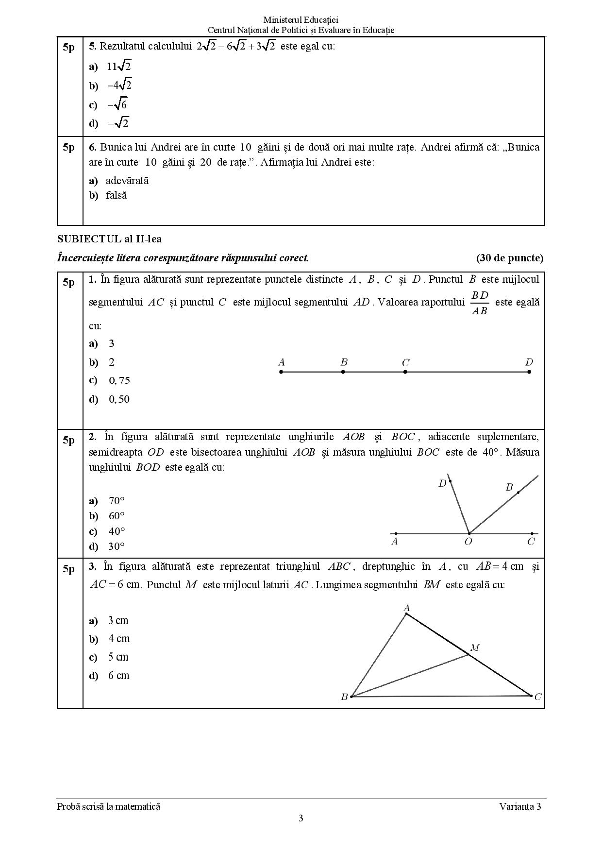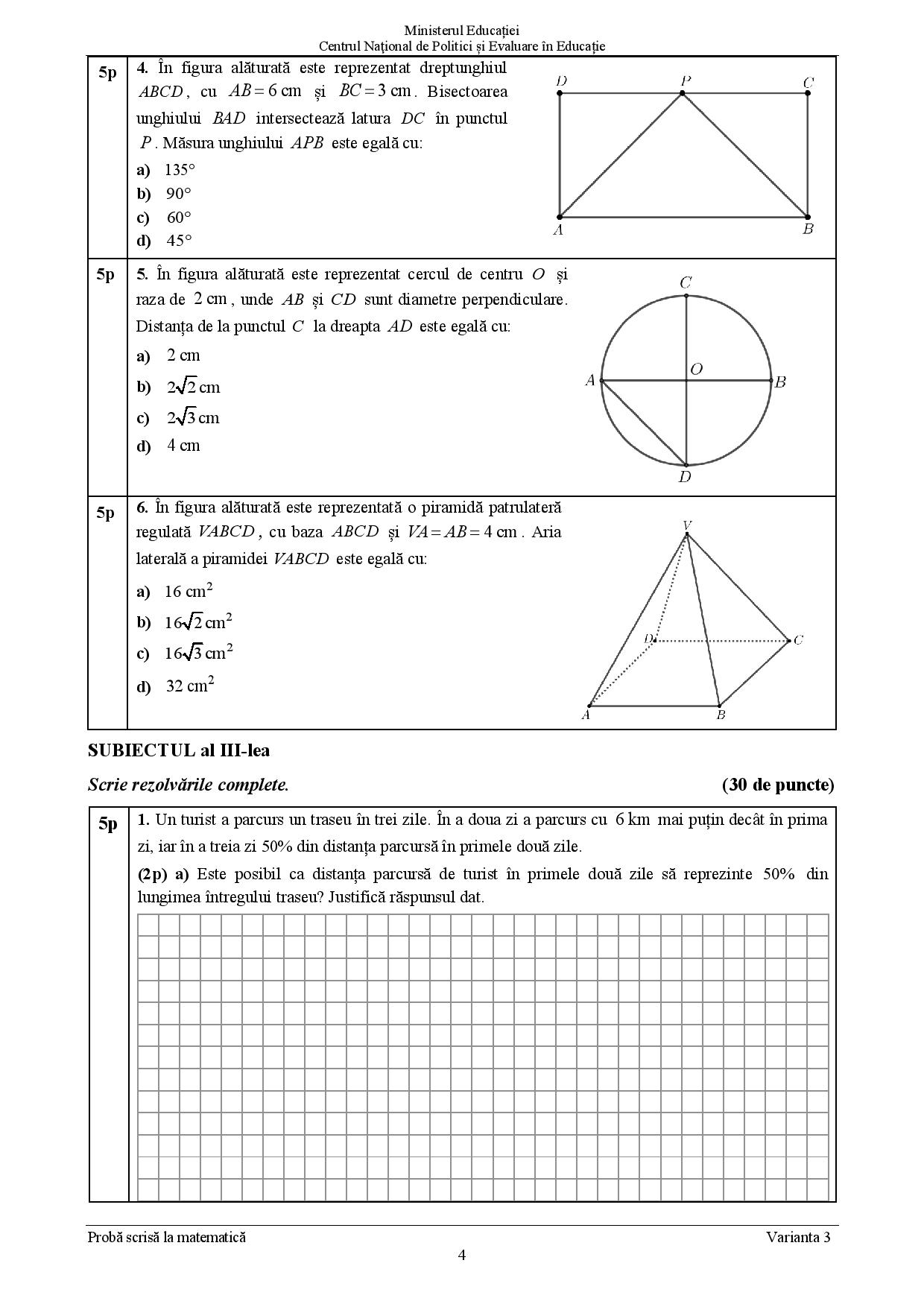Ce subiecte au primit elevii claselor a VIII-a la matematică, la Evaluarea Națională 2021?
