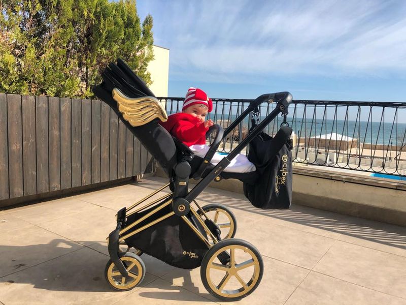 Căruciorul lui Matthias Ștefan și al Zenaidei are un design interesant. Este negru și are aplicate aripi aurii.