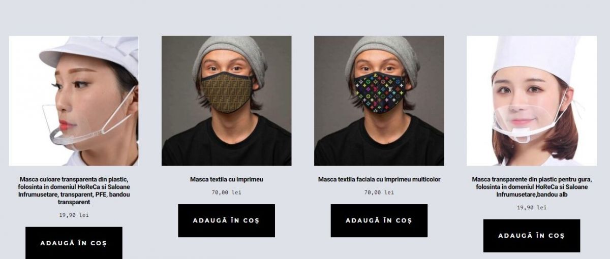 În a doua parte a anului trecut, Brigitte și Florin au lansat cu surle și trâmbițe un site pe care puneau în vânzare măști faciale cu însemnele unor branduri renumite.