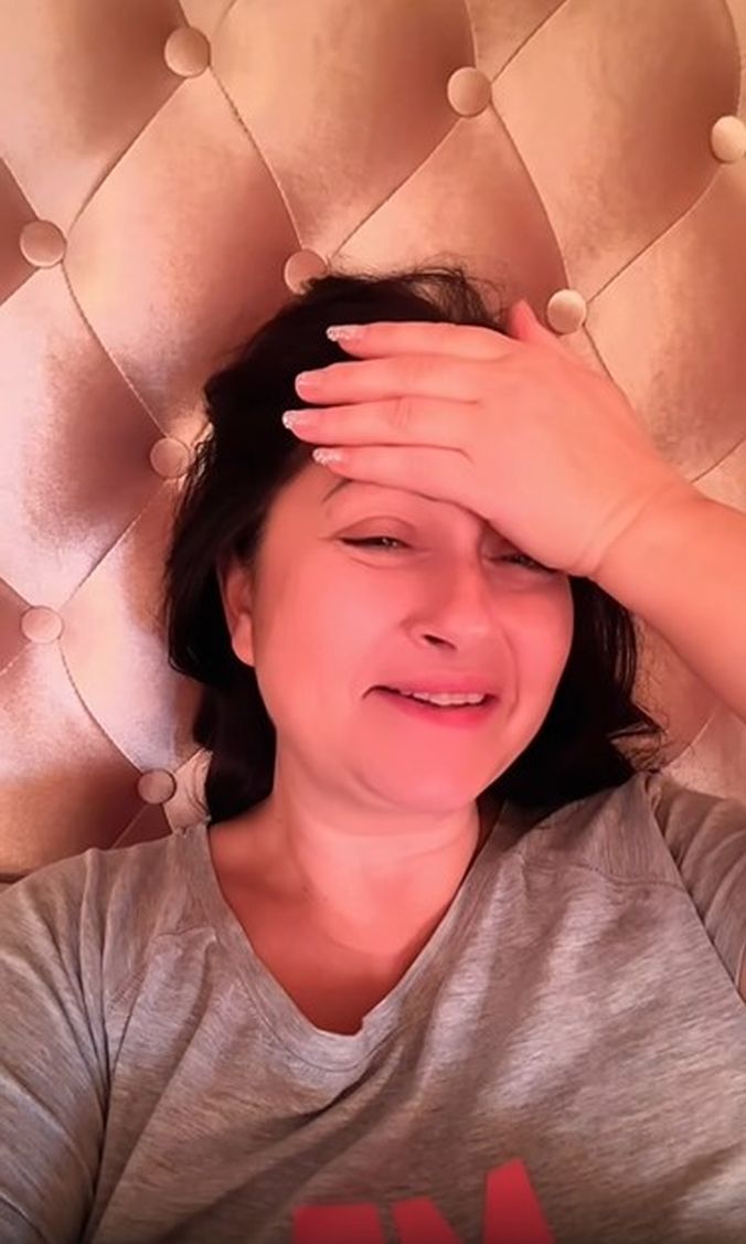 „Să nu credeți că am făcut un obicei din a mă filma în pat, ci pur și simplu astăzi sunt țintuită la pat. Am pățit un accident. Sunt cu piciorul sus pe pernă și în pachet este gheață pentru că astăzi când voiam să o duc pe Victoria la școală, când am intrat în garaj, am călcat strâmb și am luat o trântă cum nu vreți să știți”,