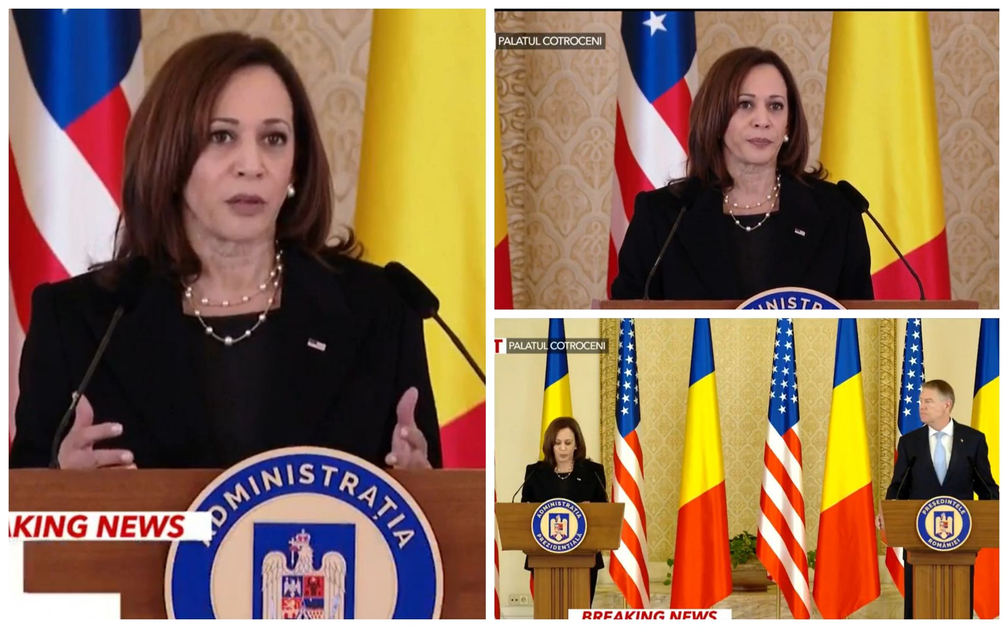 ”Aș vrea să mă adresez poporului român și să-i mulțumesc din partea SUA. România a fost extraordinară pentru curajul și solidaritatea dovedite în această perioadă. România a fost un centru al acestei asistențe umanitare. Și de aceea suntem aici, pentru a mulțumi președintelui și poporului român. SUA au o prezență continuă și rotativă în România”, a mai spus Kamala Harris.