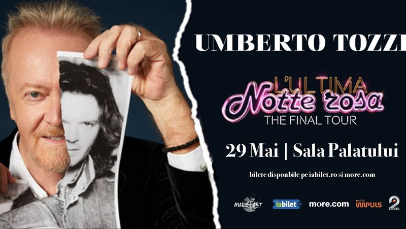 Biletele pentru concertul din 29 mai, de la Sala Palatului, inclus în turneul oficial de retragere al lui Umberto Tozzi se pot achiziționa din platformele iabilet.ro și more.com la prețurile promoționale de 175 lei, 225 lei și 275 lei, în funcție de categoria selectată.