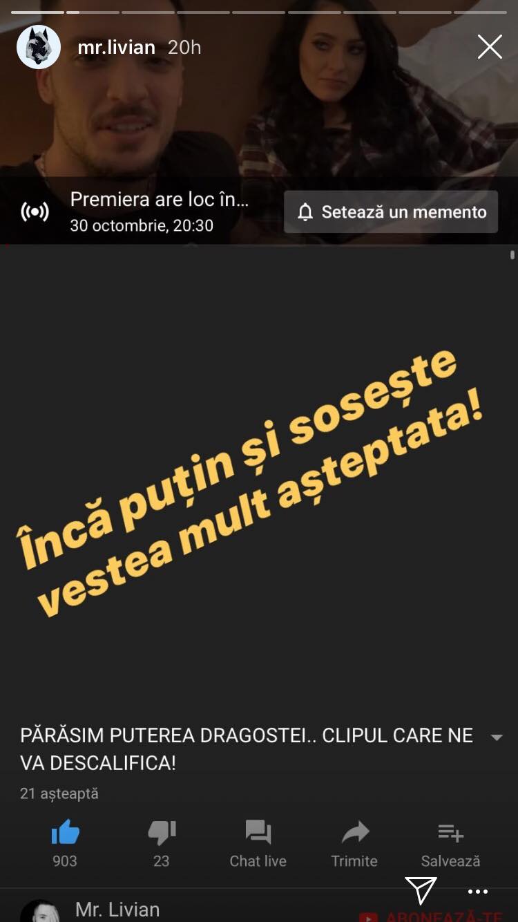 Mai mult, Livian a postat o fotografie în care anunța că în curând va face publică o veste mare: „Încă puțin și sosește vestea mult așteptată".