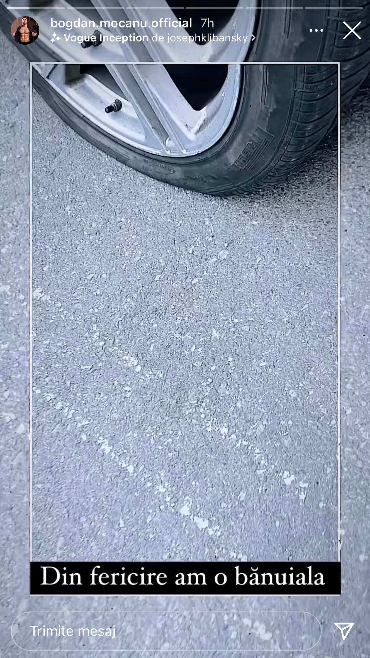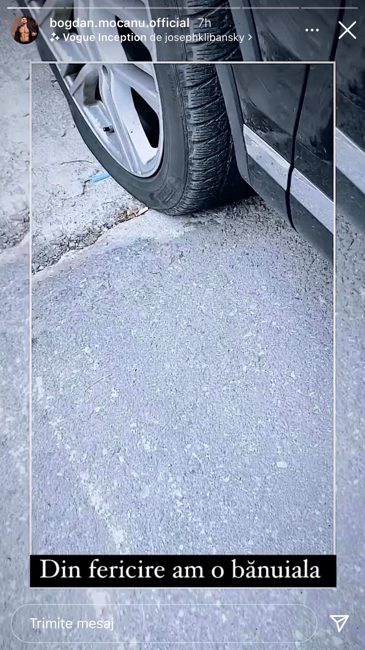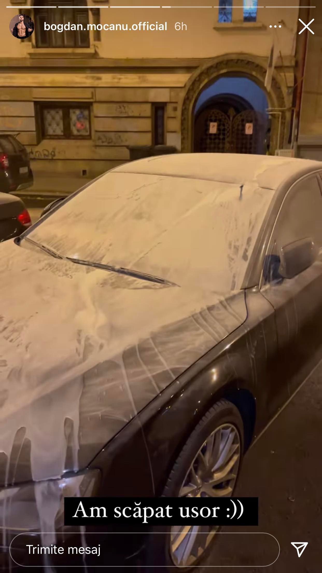 Bogdan Mocanu, pe grabă, se îndrepta către mașină pentru a pleca să își rezolve treburile, însă a avut parte de o surpriză neplăcută. Cineva s-a răzbunat pe el, astfel că a găsit toate roțile de la bolidul de lux sparte. Fostul concurent de la Puterea Dragostei a filmat totul pentru a împărtăși cu marea saa comunitate, astfel observând un detaliu care l-ar putea da de gol pe făptaș . Cel sau cea care a recurs la un astfel de gest a lasat o semnătură la locul faptei.