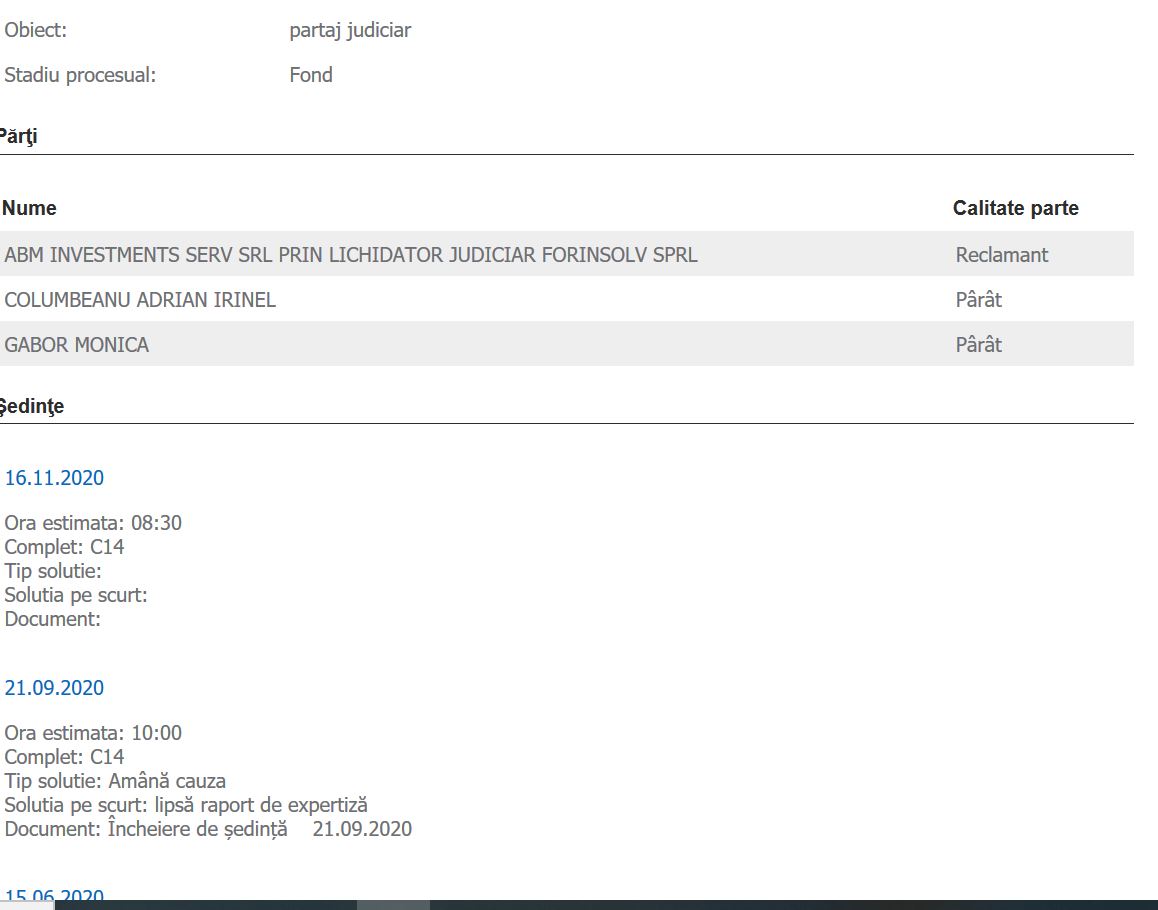 lei, însă acesta a reușit să acopere o parte din ea. Prezentul proces, care de judecă la Buftea, s-a împotmolit din cauza lipsei unui raport de expertiză. Topograful care trebuia să-l întocmească a fost deja amendat de două ori de către instanță, însă nici așa, raportul nu a ajuns în fața magistraților. În plus, a venit și pandemia, cu închiderea judecătoriilor, și a mai trecut câteva luni.